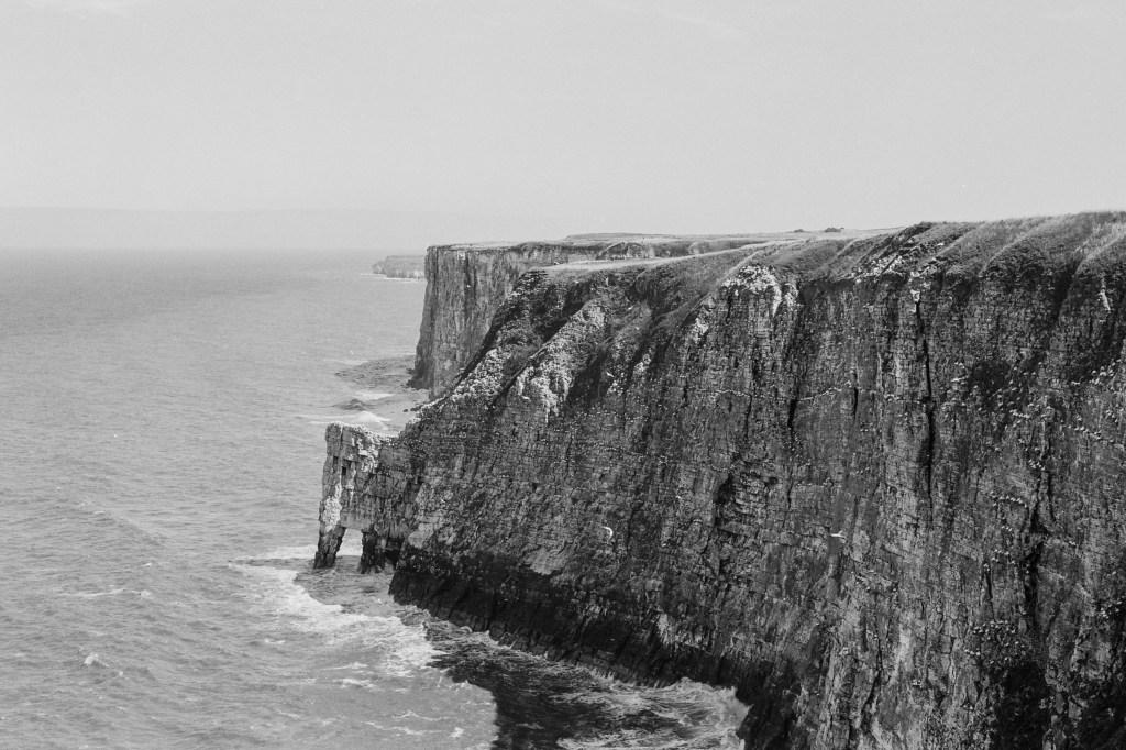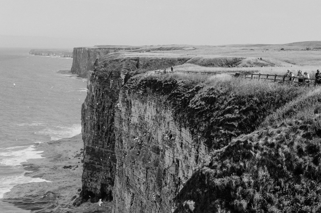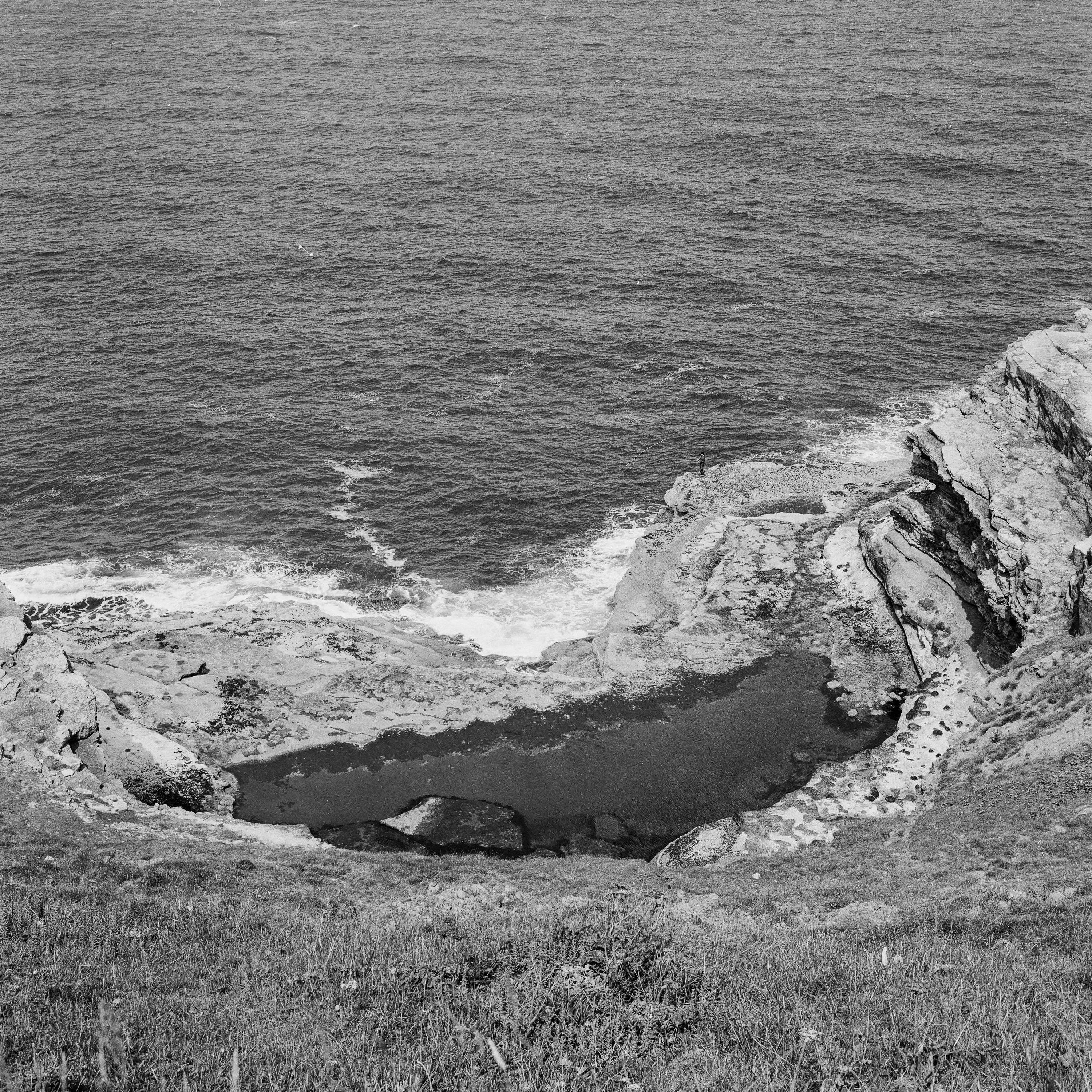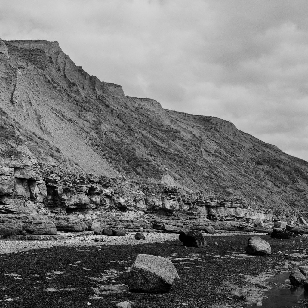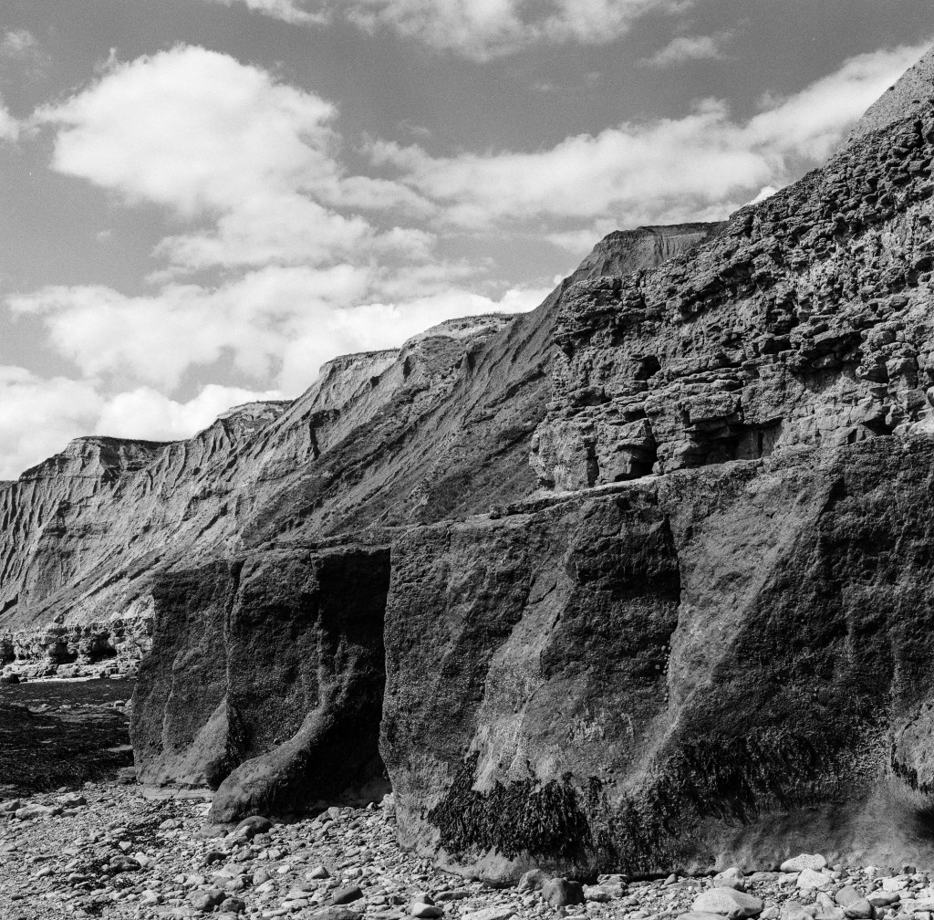 There are lots of opportunities to find good shapes, textures and tones at low tide. Especially at Filey’s Bay Corner. The boulders, rock pools and strata on the headland are perfect for the black and white film photographer.